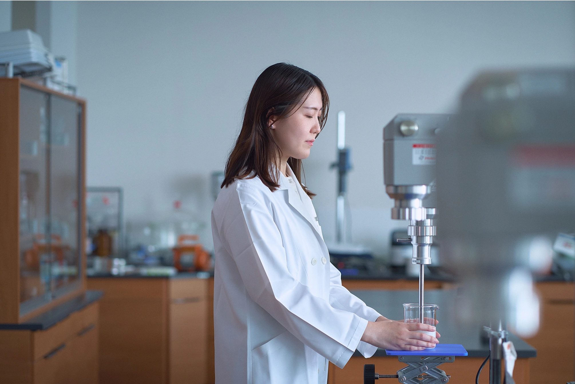 2020年入社。研究部・スキンケア製品研究グループに所属し、「FLARUNÉ」などスキンケア製品の処方開発や技術開発に従事する。