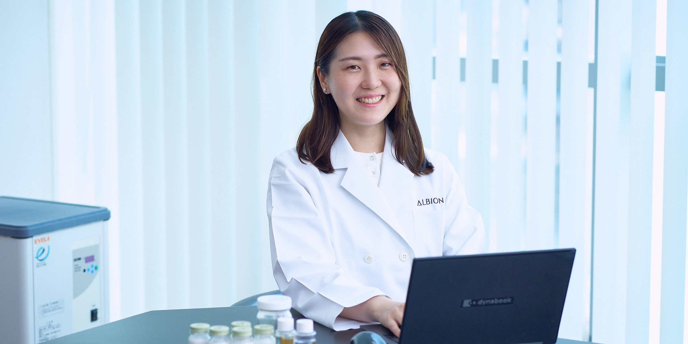 そのような環境でこれからも挑戦・成長し続けることで、将来は「アルビオンといえばこのアイテム!」と言われるような製品の開発に携わることが私の夢です。