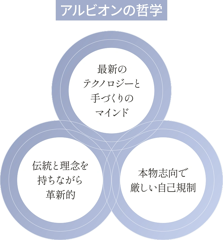 アルビオンが1956年(昭和31年)の創業以来、最も大切にし続けていること、それは「価値ある高級品の創造」です。
