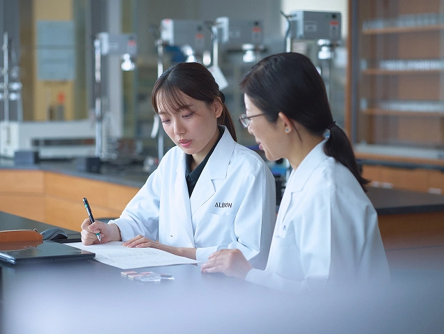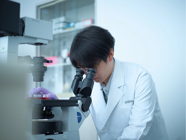 製品や素材の研究開発から、培養細胞を用いた有効性評価や実際の商品を使用した際の肌での美容効果検証など、製品開発に関連する研究を一貫して行っています。