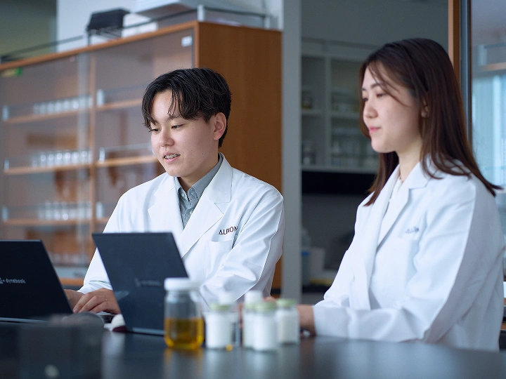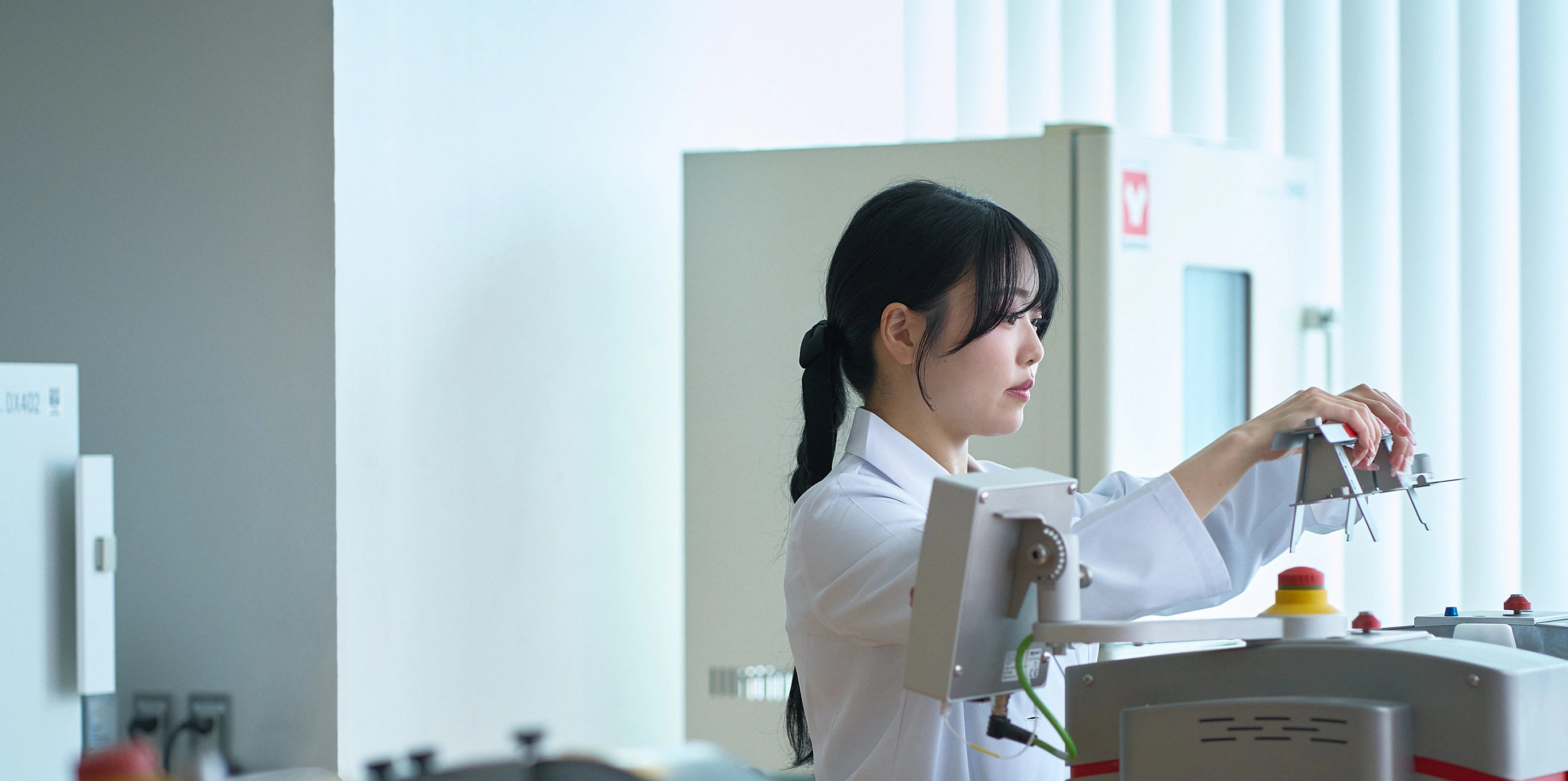 製品や素材の研究開発から、培養細胞を用いた有効性評価や実際の商品を使用した際の肌での美容効果検証など、製品開発に関連する研究を一貫して行っています。